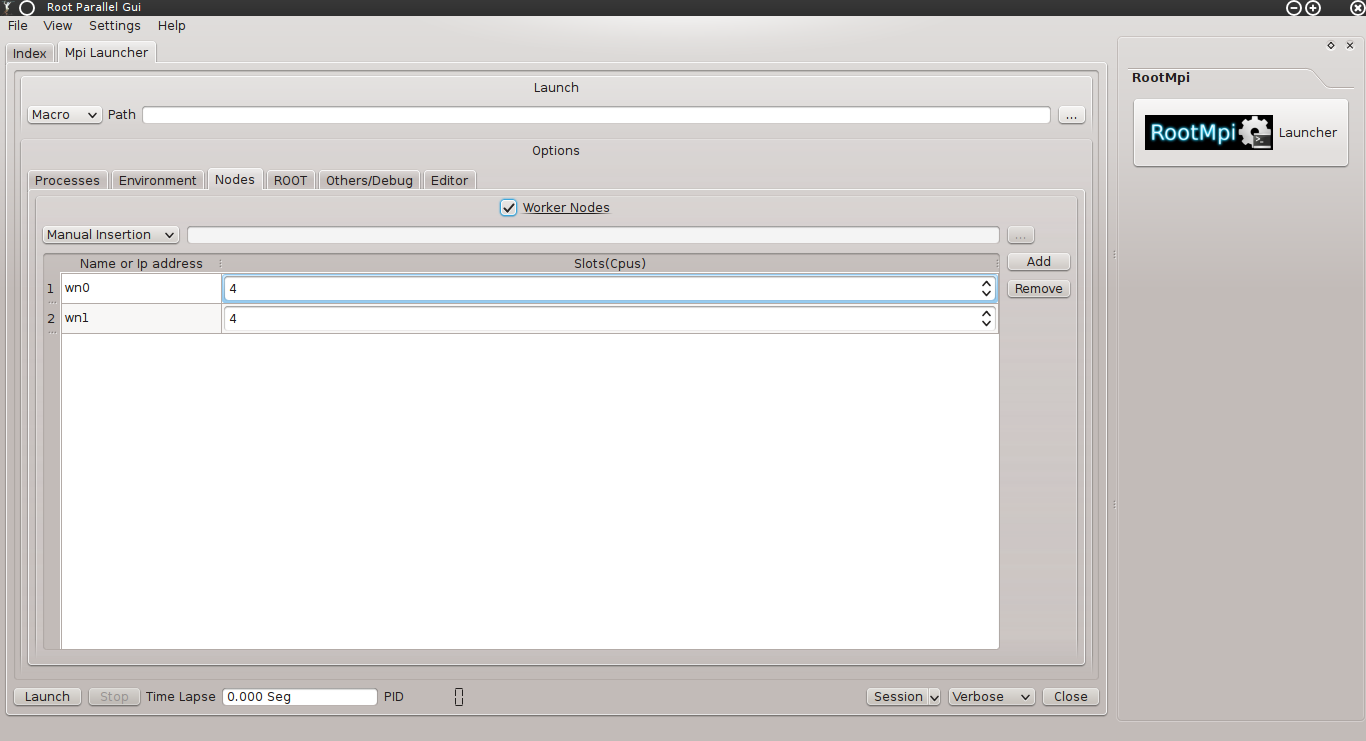 root [2] ROOT::ParallelGuiMpiLauncher mpigui;